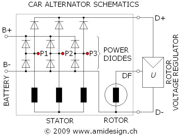 - Le D+ est l'alimentation du régulateur de tension du rotor