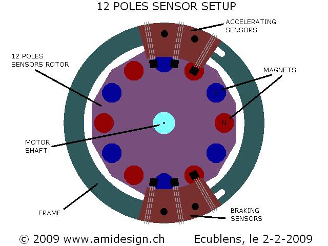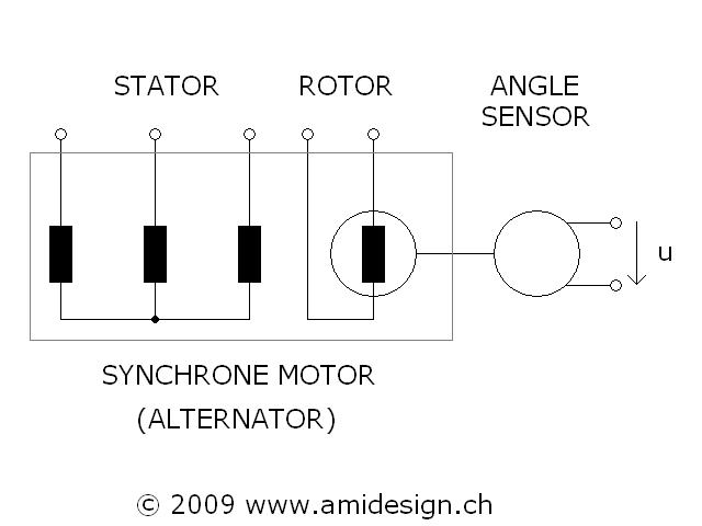 Le moteur est représenté avec un capteur de position angulaire. Ce capteur permet d'utiliser le moteur à des vitesses de rotation variables.