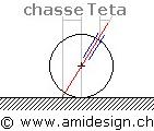 La chasse est la distance, en millimètres, entre le point de contact de la roue et la projection au sol de l'axe de pivot de la direction.