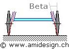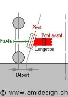 Vu de face c'est l'angle entre l'axe de pivotement des roues et le plan circulaire de la roue.