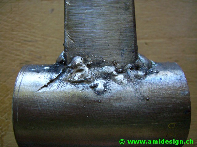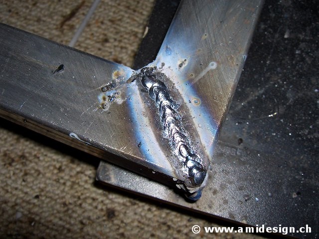 Pas facile de souder. Je ne suis pas très content de mes soudures. Je n'arrive pas à trouver le courant idéal. Soit je fait des trous, soit je fait des pâtés.