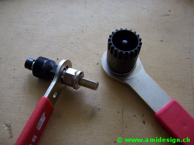 Démonte levier de pédale et clef pour le palier.