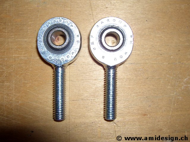 Deux embouts à rotule M6 pour la tringle de direction.