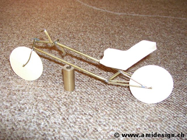 Maquette en laiton et papier au 1/10 de l'idée de base.