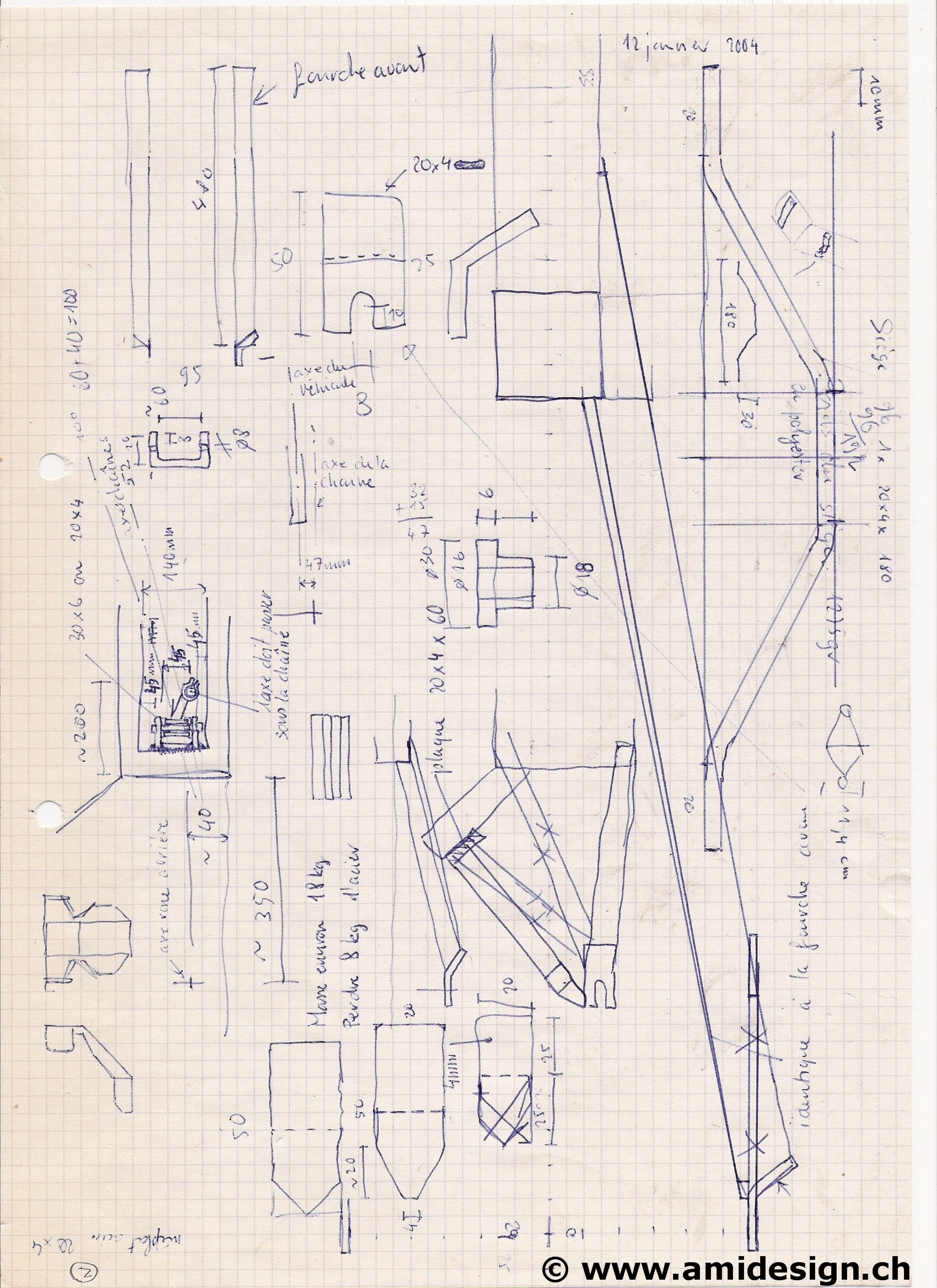 J'ai fini de dessiner les plans du vélo et j'ai débité les pièces en fer.