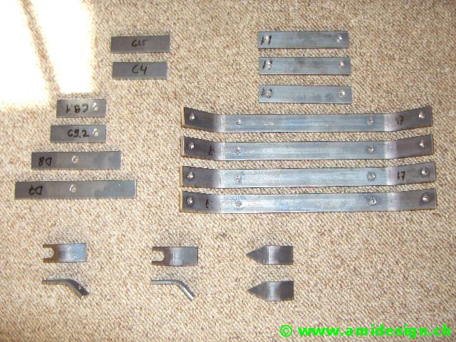 J'ai tracé, pointé, percé, taraudé et plié les pièces en fer 20 x 4 mm.