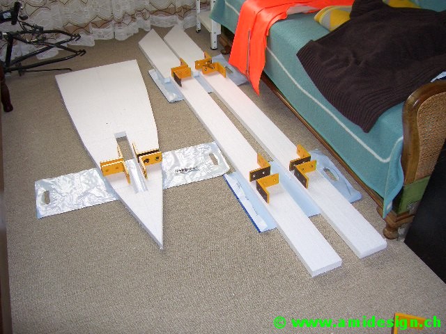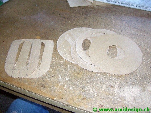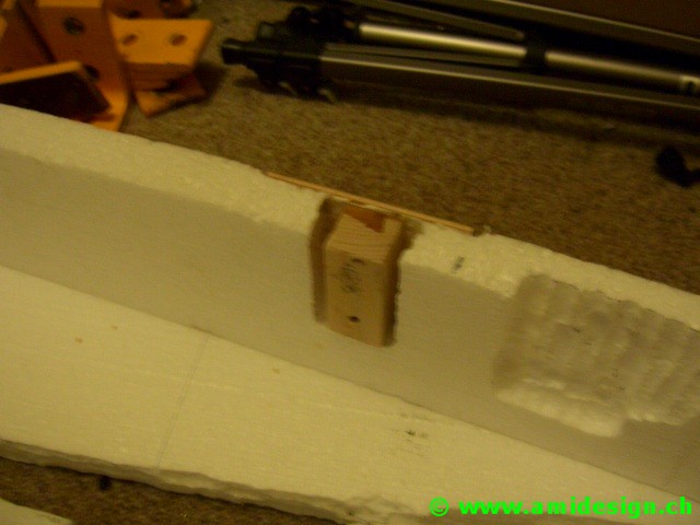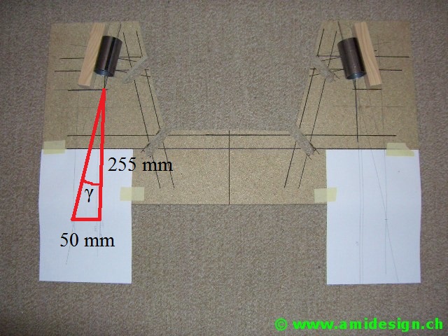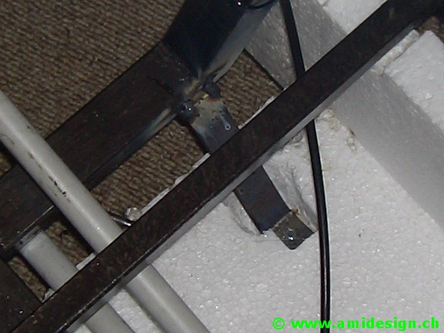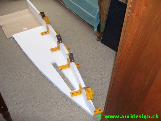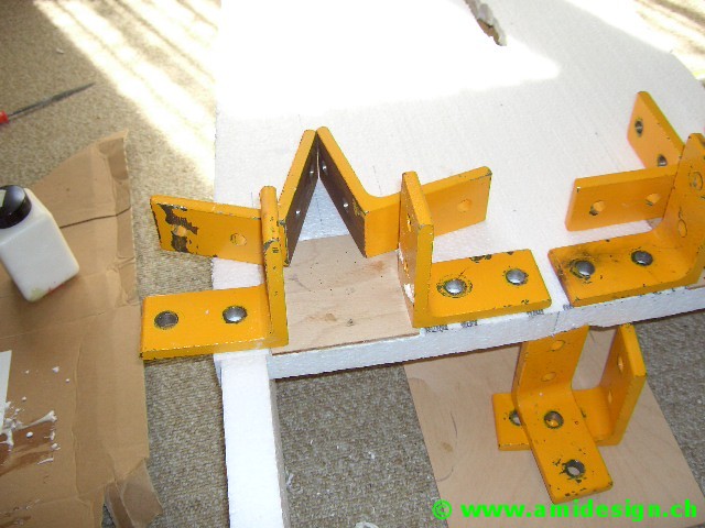 Le pont avant est construit dans un plan incliné défini par la chasse. Il va être soudé sur une planche en aggloméré qui sert de marbre.