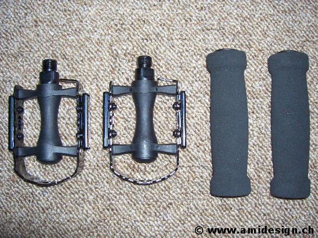 J'ai acheté un vélo d'occasion. Dessus je récupère le tube de pédalier et les supports de freins. Ceux-ci sont soudés au cadre ou à la fourche. Je vais précisément les dégager au disque à tronçonner et les finir à la meule et à la lime.