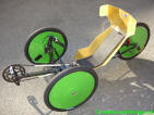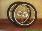 J'ai récupéré des moyeux de chaise roulante avec frein à tambour. Les jantes sont des 406-21 à 36 trous.