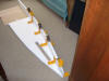 Le pont avant est construit dans un plan incliné défini par la chasse. Il va être soudé sur une planche en aggloméré qui sert de marbre.