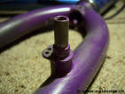 I recovered the pedal unit tube and the brakes supports on an old bicycle. I precisely cut these elements with electric saw and finished it by grinder and file. Then I finished to remove these elements. I weld them on the new frame like for my LWB.